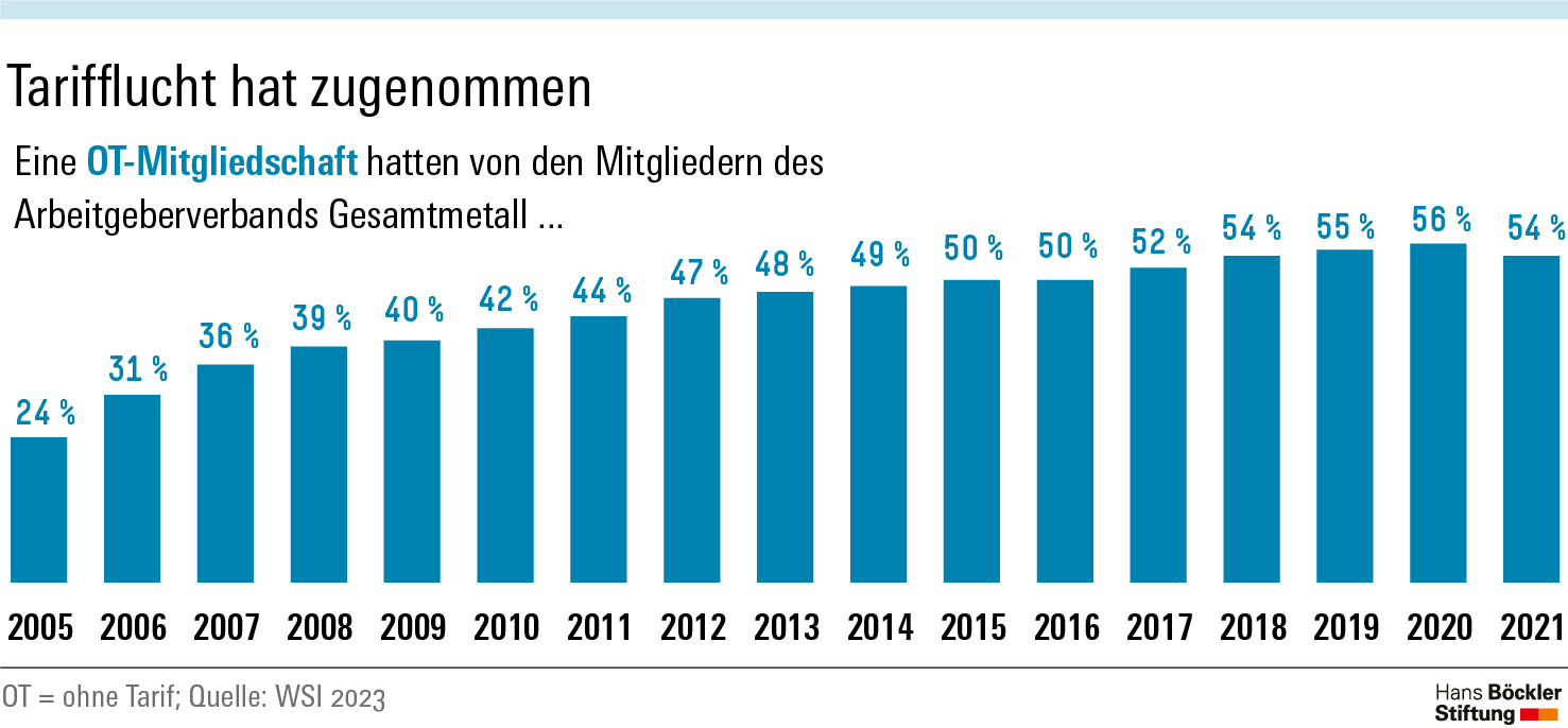 Einige Arbeitgeberverbände ermöglichen es Unternehmen, Mitglied zu werden, ohne sich an die vereinbarten Tarifverträge zu halten. Beim Arbeitgeberverband Gesamtmetall ist dies beispielsweise bei gut der Hälfte der Mitglieder der Fall.