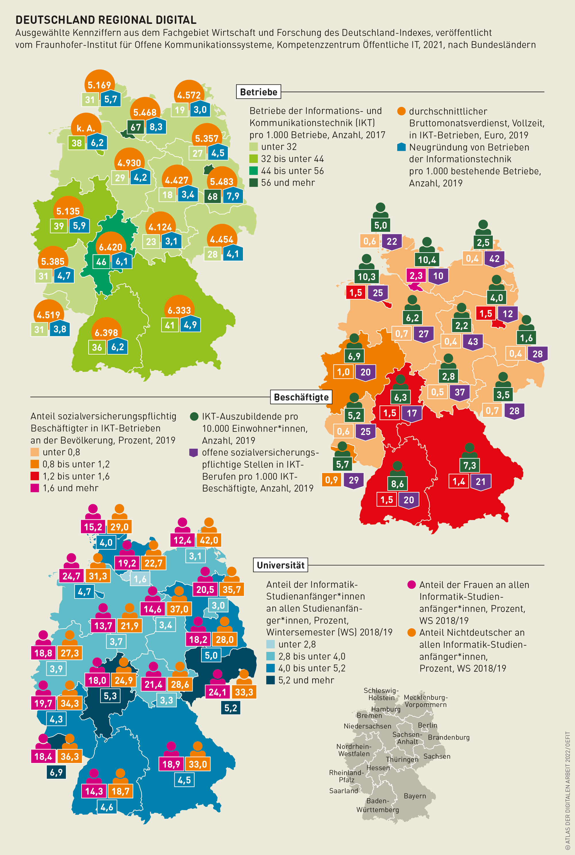 zurück Atlas der digitalen Arbeit 2022: Deutschland regional digital Quelle: Atlas-Manufaktur Berlin Grafik als PNG herunterladen Zugehörige Themen Automatisierung / DigitalisierungLohn / Gehalt / EntgeltStudium gemerkt merken teilen Auf Facebook teilen Auf Bluesky teilen Auf Mastodon teilen Auf Linkedin teilen Per E-Mail teilen