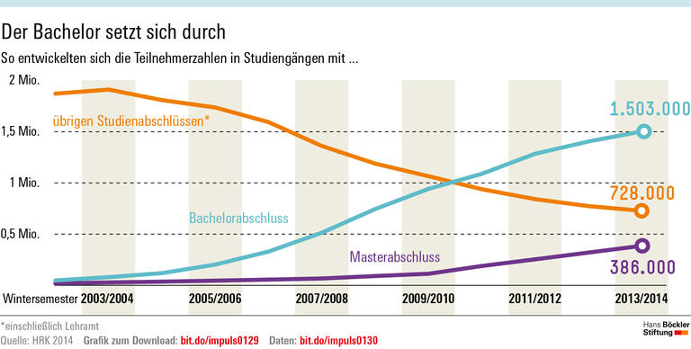 Dass die erhofften sozialen Korrekturen ausgeblieben sind, führt Neugebauer zum einen auf die unklaren Arbeitsmarktaussichten von Bachelor-Absolventen zurück. Vielen Studieninteressierten sei nicht klar, ob ein Bachelorabschluss berufliche Sicherheit und finanzielle Unabhängigkeit garantiert. Dabei seien gerade diese Faktoren für Menschen aus weniger begüterten Familien besonders wichtig. Solange der Bachelor keine überzeugende Perspektive bietet und der Master genauso lange dauert wie die traditionellen Abschlüsse, wird sich an der Studierneigung dieser Gruppe nach Einschätzung des Forschers wenig ändern – zumal es mit der dualen Berufsausbildung hierzulande eine attraktive Alternative gibt. Auch dass die neuen im Vergleich zu den alten Studiengängen als stressiger gelten, könnte eine Rolle spielen: Wer darauf angewiesen ist, neben dem Studium Geld zu verdienen, dürfte permanenten Zeitdruck als besonders fatal empfinden.