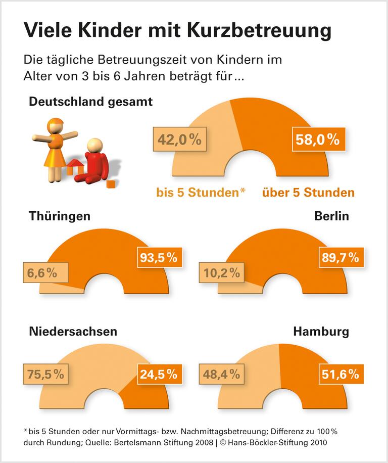 Pädagogische Qualität der Betreuung. Wenn von Flexibilisierung die Rede ist, geht es einerseits um Angebote für atypische Arbeitszeiten - also am späten Nachmittag, am Abend oder am Wochenende. Andererseits wünschen gerade viele in Teilzeit beschäftigte Mütter von Kindern unter drei Jahren Krippenplätze nur für einzelne Wochentage oder für täglich wenige Stunden. Ein ständiges Kommen und Gehen der Kinder stört allerdings sowohl das freie Spiel als auch die pädagogische Arbeit, so Stöbe-Blossey. Gerade die Kleinsten bräuchten ein gut strukturiertes Tagesraster und möglichst wenig Wechsel bei den erwachsenen Bezugspersonen. Einrichtungen mit flexiblen Angeboten bieten daher oft feste Stundenblöcke an, innerhalb derer die Kinder nicht abgeholt werden sollen. Jenseits von Mindestgrenzen bleibt es aber den Familien überlassen, wie viele Bausteine sie wählen.