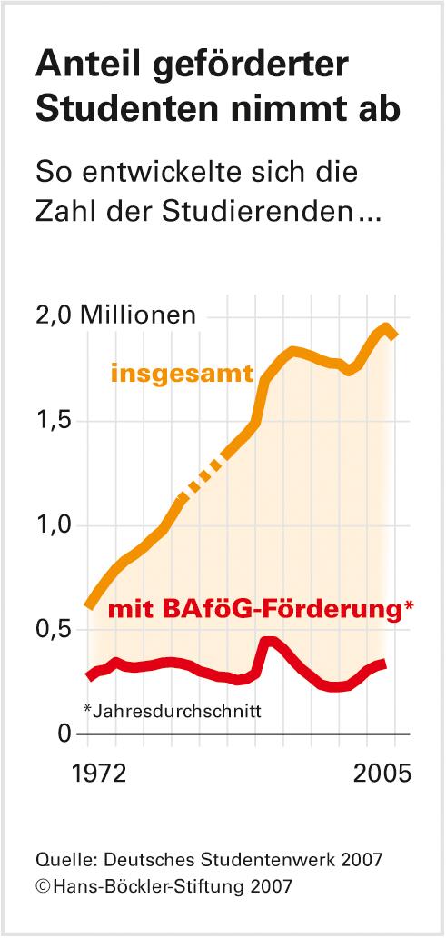 Der Anteil der BAföG-Geförderten an den Studenten geht zurück. Zur Grafik