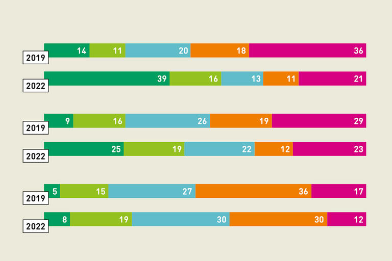 Knapp 16 Prozent aller Beschäftigten haben zum Zeitpunkt der Befragung zumindest zeitweise von zu Hause aus gearbeitet. Der Studie zufolge fällt ihre Identifikation mit dem Arbeitgeber im Schnitt höher aus als bei Beschäftigten, die keine Möglichkeit haben, im Homeoffice zu arbeiten. Allerdings gibt es unter den Beschäftigten im Homeoffice große Unterschiede: Etwa die Hälfte gibt an, dass sich ihre Work-Life-Balance durch Heimarbeit verbessert. Das wiederum kann sich positiv auf die Motivation auswirken – und auf die Identifikation mit dem Arbeitgeber. Die andere Hälfte der Beschäftigten im Homeoffice macht eine gegenteilige Erfahrung: Für sie verschwimmt die Grenze zwischen Arbeit und Freizeit, etwa weil sie ständig erreichbar sein müssen oder weil sie das Gefühl haben, besonders viel und lange arbeiten zu müssen, um zu beweisen, dass sie im häuslichen Umfeld produktiv sind. Letztlich kann darunter die Identifikation mit dem Unternehmen leiden.