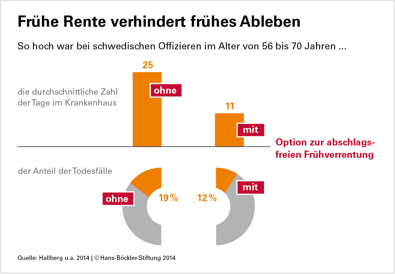 Daniel Hallberg, Per Johansson, Malin Josephson: Early Retirement and Post Retirement Health (pdf), IZA Discussion Paper Nr. 8260, Juni 2014