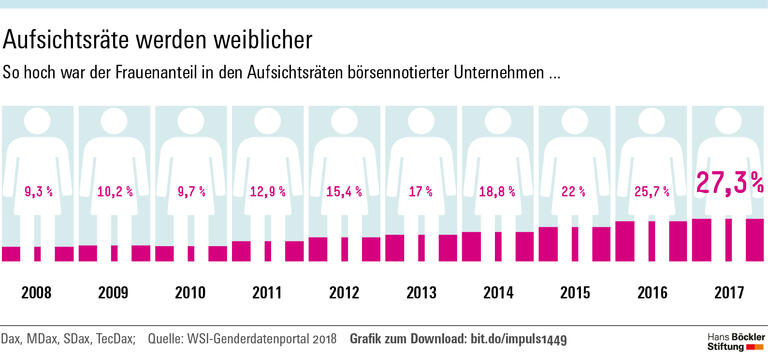 Seit drei Jahren gilt die Quote: Für Aufsichtsräte börsennotierter Kapitalgesellschaften mit paritätischer Mitbestimmung ist ein Frauenanteil von mindestens 30 Prozent gesetzlich vorgeschrieben. Auf die betroffenen Unternehmen dürfte sich diese Vorgabe laut einer von der Hans-Böckler-Stiftung geförderten Studie positiv auswirken: Jasmin Joecks, Kerstin Pull und Katrin Scharfenkamp von der Universität Tübingen haben untersucht, wie Aufsichtsräte die Rolle weiblicher Mitglieder wahrnehmen. Die Ergebnisse deuten darauf hin, dass Frauen in mehrfacher Hinsicht zu besseren Entscheidungen beitragen.