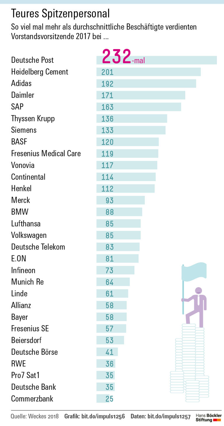 Marion Weckes: Manager to Worker Pay Ratio 2017. Das Verhältnis der Vorstandsvergütung zur Mitarbeitervergütung im DAX 30 (pdf), Mitbestimmungsreport Nr. 44, Juli 2018