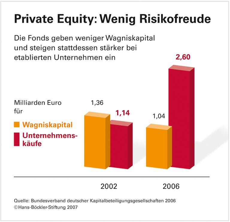 Private-Equity-Fonds verfolgen andere Interessen als die von ihnen gekauften Firmen und deren Beschäftigte. "Auch wenn zahlreiche Firmen im Portfolio des Private-Equity-Fonds Pleite gehen, kann eine hohe Anlagerendite erzielt werden", schreibt der Finanzmarkt-Experte Hans-Joachim Voth in einem Gutachten für die Hans-Böckler-Stiftung. Die Strategie bei Private Equity (PE): Sie finanzieren ihre Firmenkäufe überwiegend per Kredit, die sie den Neuerwerbungen aufbürden. Diese Last zwingt manche bis dato gesunde Firma in die Insolvenz. Schlägt sich aber ein Unternehmen trotz der Schulden gut, bringt das dem Fonds eine sehr hohe Rendite - er hat schließlich relativ wenig eigenes Kapital eingesetzt. "Einige wenige Glücksfälle gleichen die Komplettabschreibung auf gescheiterte Investitionsprojekte aus", erklärt Voth, Ökonomie-Professor an der Universität Barcelona. Doch anders als die Fonds können Beschäftigte, Zulieferer und Kommunen ihr Risiko nicht in dieser Form streuen. Der Wissenschaftler rät darum zu gezielter Regulation.