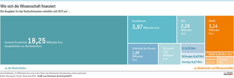 Benjamin Baumgarth, Justus Henke und Peer Pasternack: Inventur der Finanzierung des Hochschulsystems. Mittelflüsse, Kontroversen und Entwicklungen im letzten Jahrzehnt, Working Paper der Studienförderung in der Hans-Böckler-Stiftung, November 2016