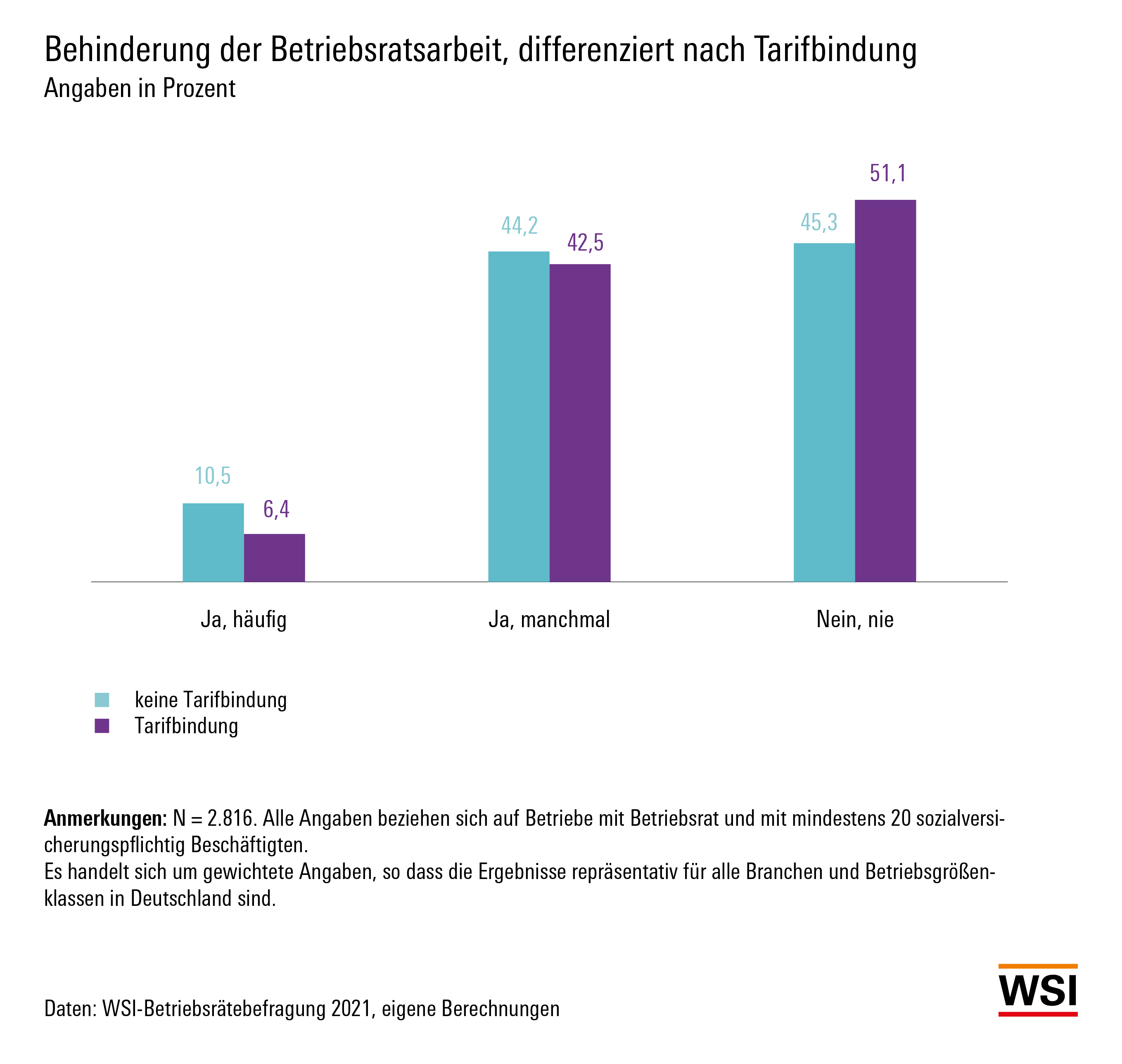 Allerdings muss berücksichtigt werden, dass auch Fälle berichtet werden, in denen Unternehmen Betriebsräte und deren ordnungsgemäße Wahlen gänzlich zu verhindern versuchen. Das heißt, dass die betriebliche Mitbestimmung gleich von zwei Seiten bedroht wird: Es gibt erstens Widerstände gegen die Gründung von Betriebsräten, und zweitens wird die Tätigkeit von Betriebsräten auch dort, wo es welche gibt, häufig behindert.